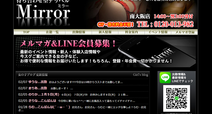 Mirror(ミラー)は、南大阪を中心とした待ち合わせ型のデリヘルです。